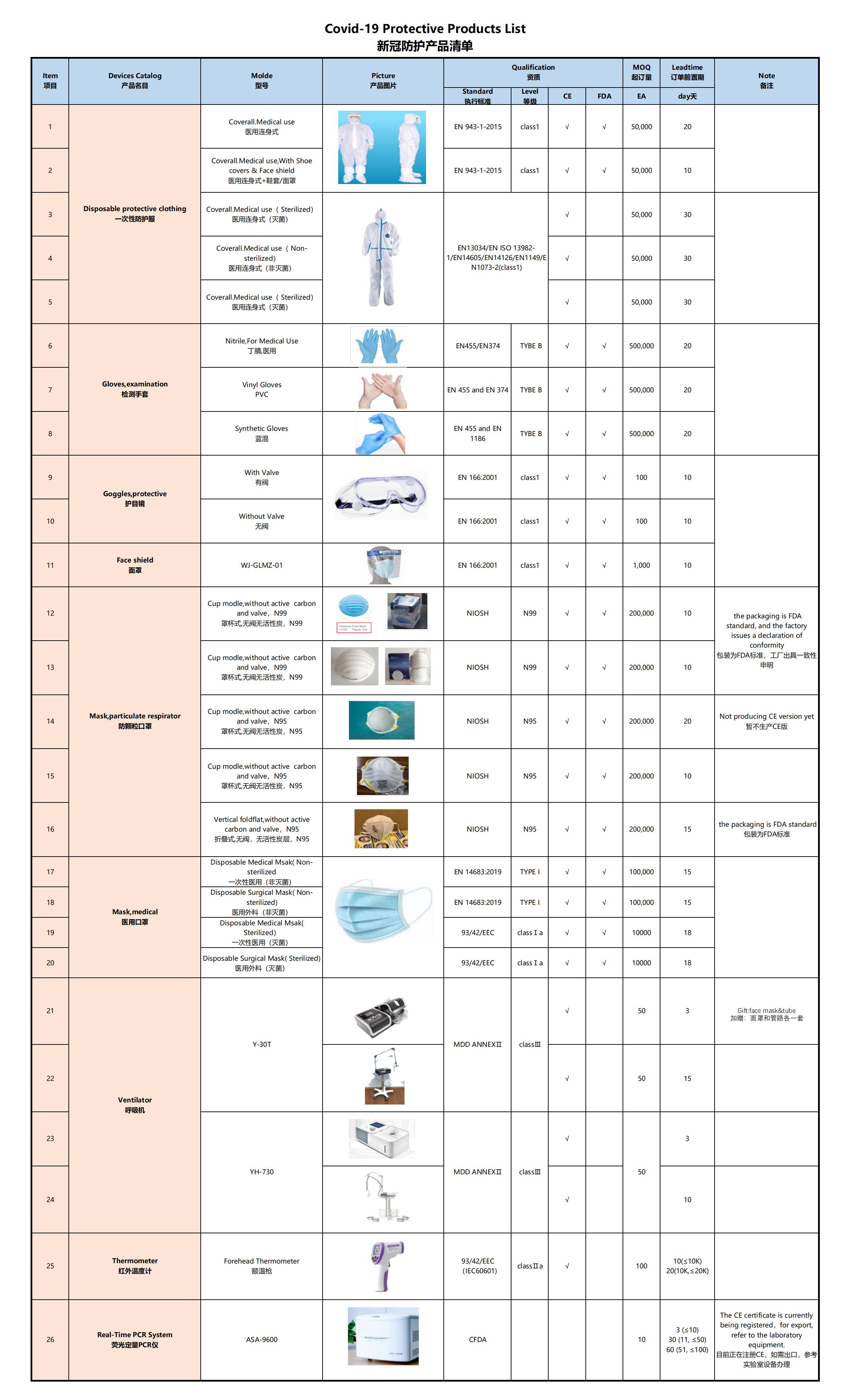 新冠防護產(chǎn)品清單